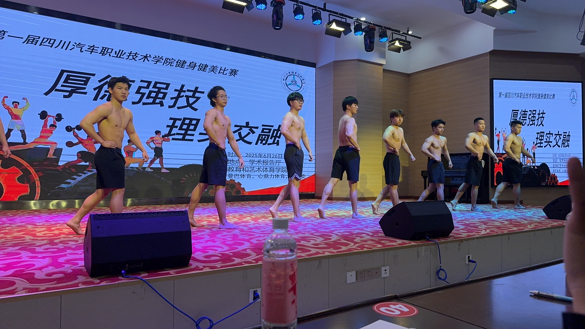 比赛期间,评委团严格按照竞赛规则,从肌肉质感、形体比例、动作完成度、舞台表现力等多个维度对选手表现进行公平公正的评分。赛后互动环节,获奖选手分享了自己的健身心得与训练经验,鼓励在场师生坚持体育锻炼,以强健的体魄投入学习与工作。本次比赛不仅为全院健身爱好者搭建了交流展示的平台,更是学院践行“五育并举”、推动素质教育的生动实践,希望全体师生以此次比赛为契机,养成良好健身习惯,将赛场上的拼搏精神转化为深耕专业、匠心筑梦的动力。